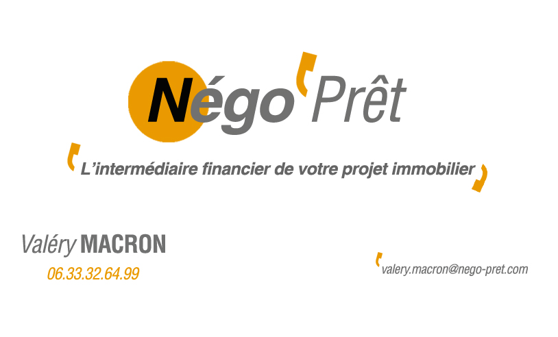 | Négo Prêt, entreprise individuelle à responsabilité limitée (EIRL). Siège social : 436, rue Marcelin Berthelot 62400 Béthune RCS Arras n°799 894 795 Courtier immatriculé au registre de l’ORIAS sous le n°14 001 881 - ACP : 61, rue Taitbout 75009 Paris – www.orias.fr |